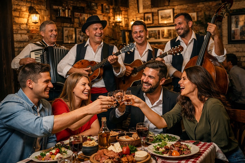 Tamburaši, starogradske i boemske pesme stvaraju toplu, intimnu atmosferu. Muzika u Skadarliji ne služi samo kao zabava, već kao emotivna nit koja povezuje goste.